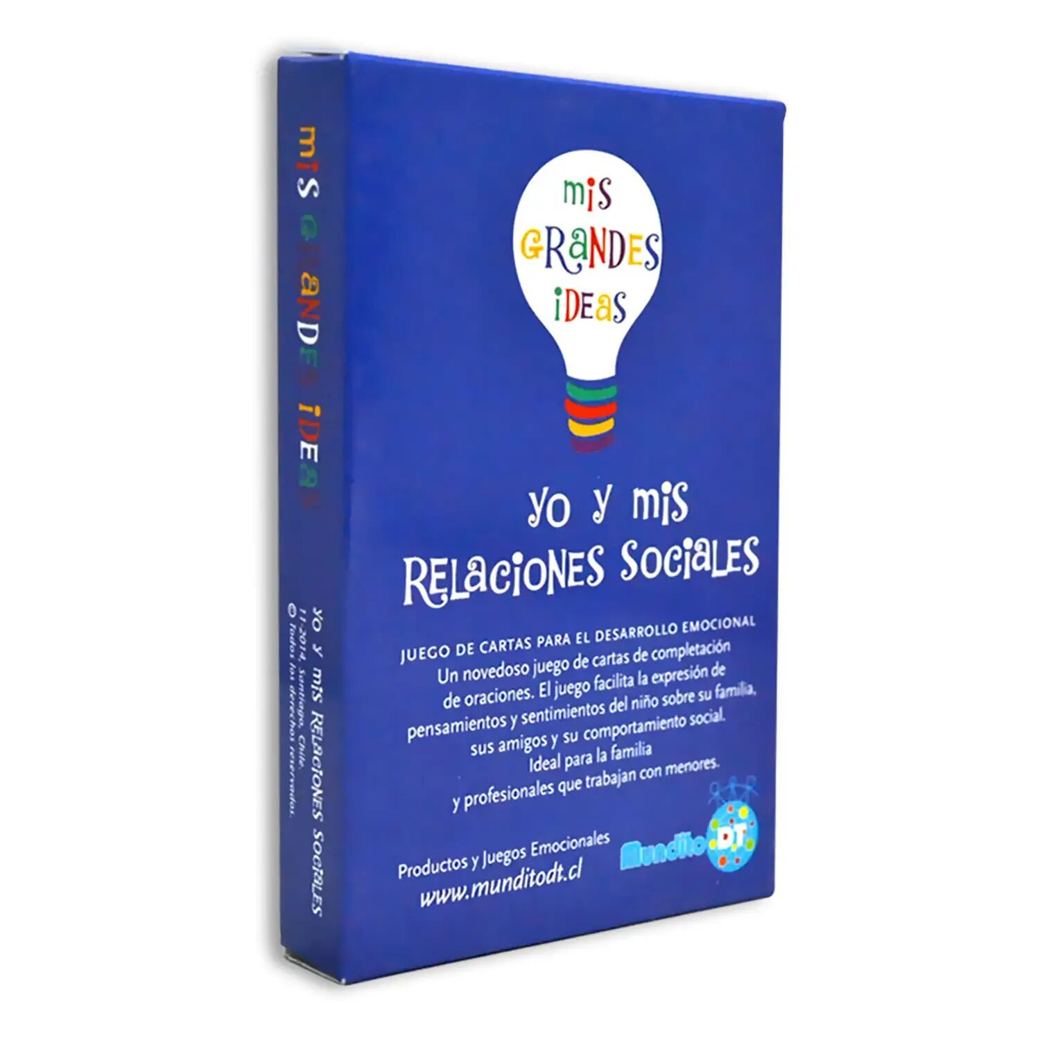Un novedoso juego de cartas de completación de oraciones que facilita la expresión de pensamientos y sentimientos del niño sobre su familia, sus amigos y comportamiento social. Herramienta ideal para padres y profesionales que trabajan con menores. El juego contiene 32 cartas que abarcan una variedad de temas relacionados con las habilidades sociales, incluyendo amistades, relaciones familiares, timidez, sociabilización, liderazgo e imagen social. A través del juego el adulto podrá facilitar el desarrollo de las habilidades sociales y de interacción familiar del niño.Edad: 3+ años